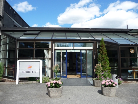 Etter vielsen kjørte vi tilbake til Bø Hotell for å ta med oss bryllupsgaver og andre ting vi trengte til bryllupsfesten!:) Her er inngangen til Bø Hotell.