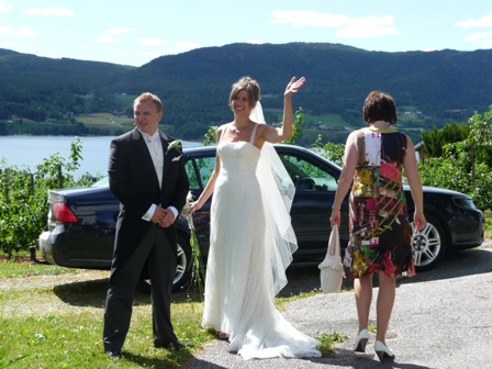 Brudeparet snart på vei til å forlate Nes Kyrkje med kurs for bryllupsfesten!:)