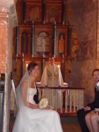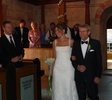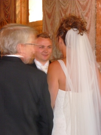 Bruden møter sin kjære brudgom fremme ved alteret, og brudgommen ble kjemperørt da han fikk se sin kommende kone!:)